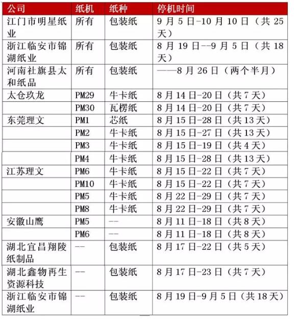 9月原本是包裝紙的傳統(tǒng)旺季,在中秋和國慶雙節(jié)利好帶動下,紙板廠在8月中旬曾出現(xiàn)過短暫半月的采購小高潮。但隨著8月底補貨提前結(jié)束,市場再度回歸平淡,旺季的需求疲軟逐漸給紙企帶來庫存壓力,規(guī)模紙企利潤縮減,而多數(shù)中小紙企利潤難保,無奈之下,部分紙企開始采取小幅降價或停機措施。 廣東又一規(guī)模紙廠停機:9月15日起全廠停機25天 江門市豐達紙業(yè)有限公司/江門市明星紙業(yè)有限公司:為了給廣大客戶提供更優(yōu)質(zhì)的原紙,我司決定于2018年9月15日-2018年10月10日進行紙機技術(shù)改造及電站檢修維護,全廠停機25天。請各客戶提前做好用紙安排!據(jù)悉該廠有5條造紙生產(chǎn)線。 旺季停機檢修似乎已成為今年的主旋律。華印小編不完全統(tǒng)計發(fā)現(xiàn),7月至今停機檢修的紙機多達60臺左右。其中,時間最長的停機時間長達約75天(兩個半月),短的也有一周左右。停機原因包括:停產(chǎn)保價、響應(yīng)政府節(jié)能減排號召、環(huán)保督察下的鍋爐檢修等,但據(jù)紙板廠透露大多數(shù)紙廠停機是因為下游需求縮水引起的去庫存或利潤縮水后的保價需要。