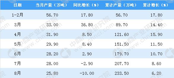 據(jù)中商產(chǎn)業(yè)研究院數(shù)據(jù)庫顯示,2018年3-8月安徽省機制紙及紙板產(chǎn)量呈下降趨勢,2018年8月安徽省機制紙及紙板產(chǎn)量為25.8萬噸,同比下降10%。2018年1-8月安徽省機制紙及紙板產(chǎn)量為233.5萬噸,同比增長6.2%。