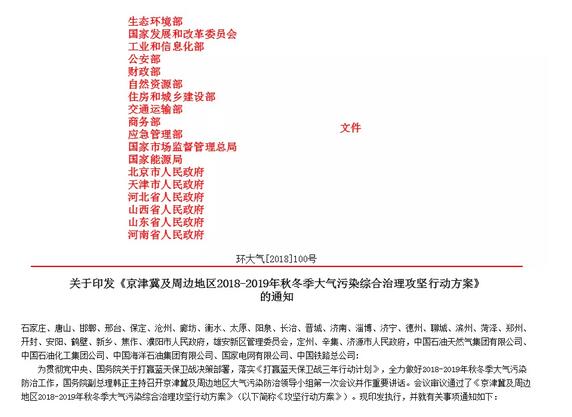 “停工令來了”?錯峰生產,增加鐵路運輸比例 9月21日生態環境部正式下發文件《京津冀及周邊地區2018-2019年秋冬季大氣污染綜合治理攻堅行動方案》: 重點內容整理如下:
