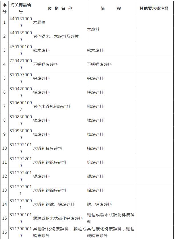 備注:海關(guān)商品編號欄僅供參考。 附件2.>2019年年底調(diào)整為禁止進口的固體廢物目錄