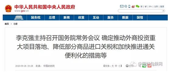 至此今年以來已出臺降關稅措施預計將減輕企業和消費者稅負近600億元,我國關稅總水平將由上年的9.8%降至7.5%。 會議還決定加快通關便利化進程。今年11月1日前將進出口環節需驗核的監管證件從86種減至48種。清理不合規收費,10月底前由各地向社會公布當地口岸收費目錄清單,清單之外不得收費。 此外,還將推動降低合規費用,年內集裝箱進出口環節合規成本比去年降低100美元以上,沿海大港要有更大幅度降低。有關部門要聯合督促監管。