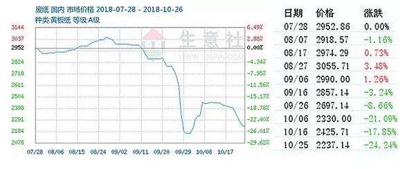 廢紙已下調2000元/噸,數年難遇,廢紙商倉皇逃離 齊魯晚報記者了解到,自農歷八月十五以后,廢品價格開始大幅走低,至今仍持續低迷。從事廢品收購多年的徐先生坦言,近幾年紙盒類還沒有如此大幅度的降價,直接導致每日收購量大幅縮減。 “降價之前每日至少收購1000斤,F在自從紙盒大幅降價后每日最多600斤!毙煜壬Q,明顯感覺到除了一些剛裝完修必須售賣的紙盒外,好多市民咨詢完價格后表示再等等。因為掙得少,身邊很多同行已經不干了。 事實也確實如此,近一個多月以來,廢紙價格急轉直下,開啟跌跌不休模式。華印小編發現:以山東地區為例,10月25-26日,包括昌樂世紀陽光紙業、東營華泰紙業、天地緣紙業等在內的數家紙企仍在下調廢紙收購價格,下調幅度集中在50元/噸,下調后的廢紙箱價格在1600-2500元/噸。這個價格與今年廢紙高位價格3300元/噸相比,最高下調了1700元/噸。而在廣東市場目前廢紙價格仍在下調,當前價格在1800-2500元/噸左右。相比今年5月3800-3900元/噸的價格高點,最高已下調了2000元/噸,這個幅度確實令人咋舌。 此外,據生意社數據監測:10月25日國內廢黃板紙市場收購價格繼續延續著前幾天的下行趨勢,當日均價為2237.14元/噸,下調價格在30-100元/噸左右,與7月底相比跌幅高達24.24%。
