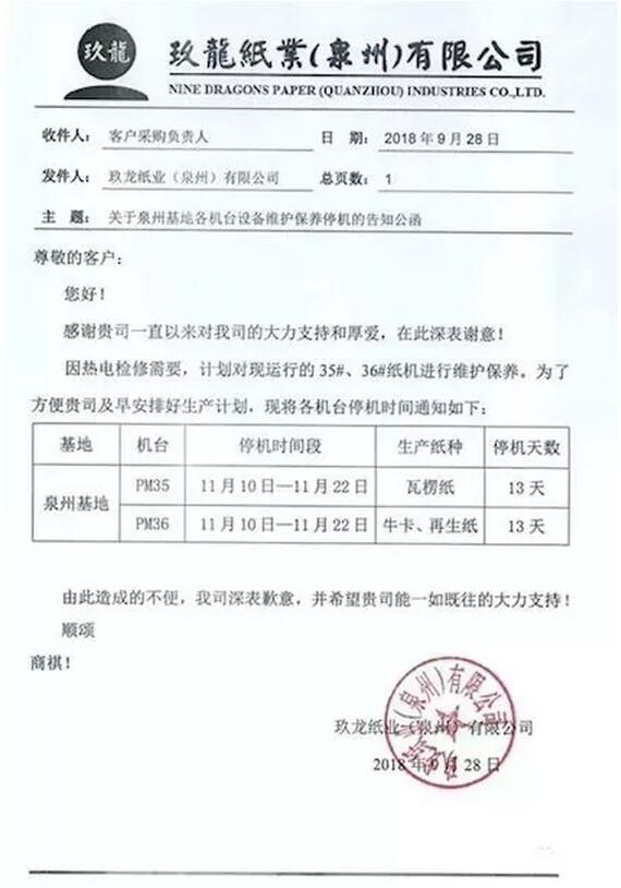 紙廠傲嬌的姿態維持了大半年,總算認清了市場的真正形勢,他們的敵人不是包裝印刷企業的不聽號令,而是冰冷的經濟環境。紙廠意識到,單單降價并不足以清除兩年來積累的高庫存,必須停機減少供給。因此,停機便成了紙廠自覺的行動。10月24日,東莞金洲、銀洲紙業發出停機檢修通告,11月5日~12月5日停機檢修31天。不久前,泉州玖龍也發出了對35#、36#紙機11月10日-22日停機檢修13天的公告。 有紙業人士認為,紙廠在旺季紛紛停機,兼或降價,或是為了保住成品紙價格,降低庫存,同時借此打壓國內廢紙價格,讓自己和市場都喘口氣。但包小編認為,紙廠的心氣應該沒那么高了,再不去除庫存,紙廠將面臨著現金流危機,因為敏銳而嗜血的資本已經開始有秩序地撤退了。