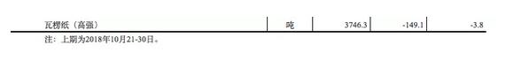 11月14日,國家統計局公布了11月1-10日國內流通領域重要生產資料市場價格變動情況。其中,高強瓦楞紙價格較上一期大幅下降了149.1元/噸,環比下降3.8%,價格跌至3746.3元。