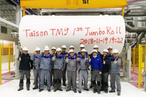 TM9號衛生紙機是江西泰盛在2018年下半年以來投產的第三臺生活用紙機。TM7號機和TM8號機在2018年6月27日和10月27日分別開機成功,TM10號機也將于近期投產運行。江西泰盛的四臺衛生紙機均為福伊特XcelLine紙機,在全部投產后,泰盛集團將增加24萬噸生活用紙原紙產能。
