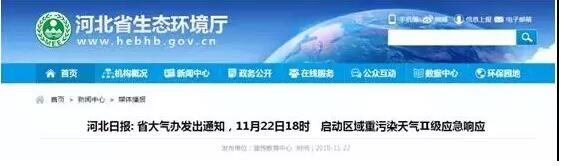河北省 河北省大氣辦11月20日發出《關于啟動區域一和區域二Ⅱ級應急響應的通知》,要求區域一的石家莊、保定、衡水、邢臺、邯鄲、定州、辛集、雄安新區和區域二的唐山、廊坊、滄州11月22日18時發布重污染天氣橙色預警,啟動Ⅱ級應急響應。經河北省環境應急與重污染天氣預警中心、中國環境監測總站、省環境氣象中心聯合會商,預計11月24日至27日,河北省擴散條件持續轉差,中南部和東部地區可能出現中度至重度污染過程。 根據河北省有關規定,啟動Ⅱ級應急響應后,二氧化硫、氮氧化物、顆粒物的減排比例要達到全社會的20%以上,揮發性有機物減排比例達到15%以上。各地可根據本地污染物排放構成,調整二氧化硫和氮氧化物減排比例,但二者比例之和不應低于上述總體要求。 強制性減排措施: ①對鋼鐵、焦化、鑄造、碳素、建材、醫藥(農藥)等高排放行業企業采取差異化錯峰生產,對一般產能過剩的行業企業采取輪流停產方式。 ②未執行輪流生產、錯峰生產的企業,采取降低生產負荷等方式減少污染物排放。