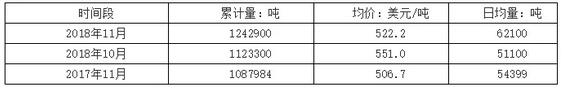 據統計,11月份巴西共出口紙漿114.29萬噸,平均日均出口6.21萬噸,平均出口價格為522.2美元/噸。與10月份相比,11月份巴西紙漿出口量環比上漲10.65%,日均出口量環比上漲21.53%,出口均價減少28.8美元/噸。與去年同期相比,紙漿月出口量同比漲幅達14.24%,日均出口量同比上漲14.16%,出口均價增加3.06%(15.5美元/噸)。