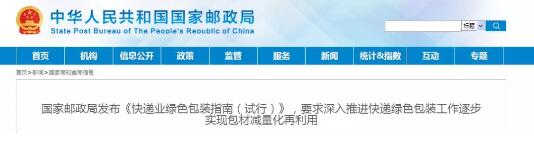 導(dǎo)語:近日,根據(jù)《快遞暫行條例》等有關(guān)規(guī)定,國家郵政局制定發(fā)布了《快遞業(yè)綠色包裝指南(試行)》(以下簡稱《指南》),規(guī)定了行業(yè)綠色包裝工作的目標(biāo),即快遞業(yè)綠色包裝堅(jiān)持標(biāo)準(zhǔn)化、減量化和可循環(huán)的工作目標(biāo),加強(qiáng)與上下游協(xié)同,逐步實(shí)現(xiàn)包裝材料的減量化和再利用。