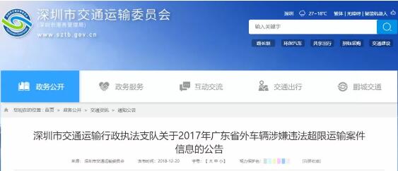 另外,12月20日,深圳交委發布通知,擬對3021輛省外涉嫌違法超限運輸車輛進行處罰!超限超載,秋后算賬,一個都逃不了!