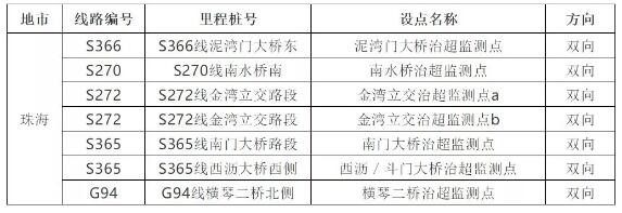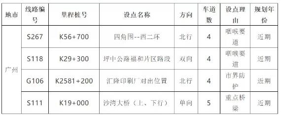 注:S256線(K66+200)路段大致位置在江龍大道下圍村路段 根據部署,廣州近期還將建設以下4處監測點: