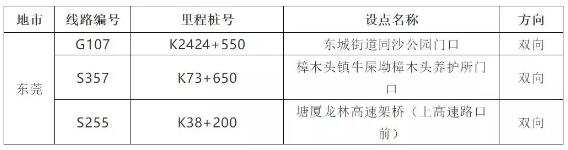根據部署,東莞近期還將建設以下3處監測點: