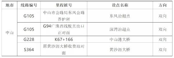 而中山市也將于近期建設以下4處監測點:
