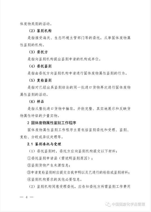 生態環境部 中華人民共和國海關總署 公告2018年第70號 關于發布進口貨物的固體廢物屬性鑒別程序的公告 為貫徹《中華人民共和國固體廢物污染環境防治法》和《固體廢物進口管理辦法》,加強進口固體廢物的環境管理,規范進口貨物的固體廢物屬性鑒別工作,現發布《進口貨物的固體廢物屬性鑒別程序》(見附件)。 該程序自發布之日起實施,《關于發布固體廢物屬性鑒別機構名單及鑒別程序的通知》(環發〔2008〕18號)同時廢止。 特此公告。 附件:進口貨物的固體廢物屬性鑒別程序 生態環境部 海關總署 2018年12月26日 主送:各省、自治區、直轄市生態環境廳(局),新疆生產建設兵團環境保護局,海關總署廣東分署、天津特派辦、上海特派辦、各直屬海關。 抄送:發展改革委,商務部。 生態環境部辦公廳2018年12月27日印發 附件1:進口貨物的固體廢物屬性鑒別程序