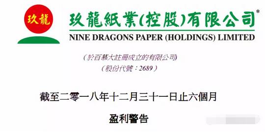 2月1日,玖龍紙業(yè)發(fā)布公告稱,截至2018年12月31日止六個月,公司權(quán)益持有人應(yīng)占盈利預(yù)計不低于人民幣24億元,較去年同期下降約45%,減少了人民幣19.5億元。