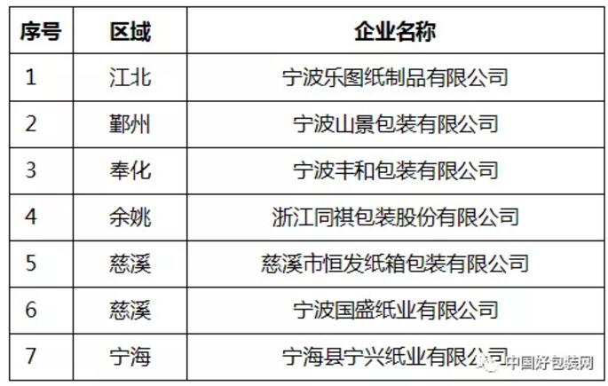 近日,寧波市經(jīng)濟(jì)和信息化局公示了寧波市節(jié)水型企業(yè)(第六批),其中,有7家包裝企業(yè)上榜。