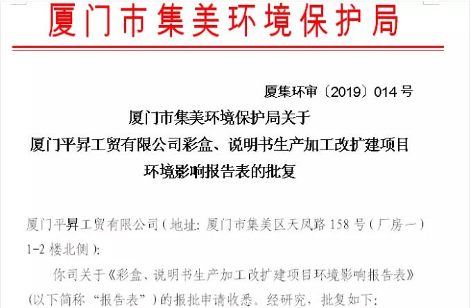 福建省廈門市集美環(huán)境保護(hù)局于2月21日發(fā)布了一系列項(xiàng)目的環(huán)評(píng)公告,其中廈門平昇工貿(mào)有限公司年產(chǎn)12噸彩盒擴(kuò)建項(xiàng)目通過了環(huán)評(píng),該項(xiàng)目總投資150萬元,其中環(huán)保投資50萬元。