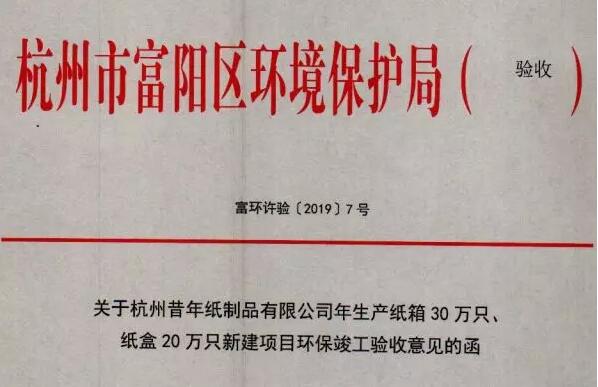 導(dǎo)語:近日,浙江省杭州市富陽區(qū)環(huán)保局發(fā)布了“關(guān)于2019年02月25日建設(shè)項目竣工環(huán)境保護驗收審批決定的公告”,其中包括杭州昔年紙制品有限公司年生產(chǎn)紙箱30萬只、紙盒20萬只新建項目。該項目投資150萬元,環(huán)保投資15萬元。