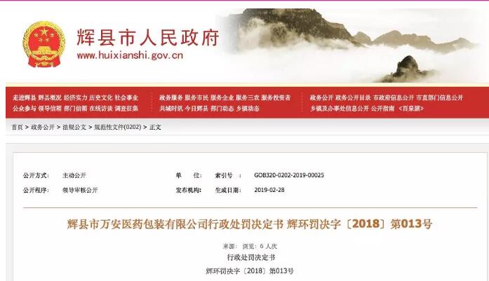 行政處罰決定書: 本機關于2018年4月2日對你單位未對生產過程中產生的工業固體廢物存放于污染環境防治場所立案調查。經調查,你單位年產8000萬件彩印包裝盒、說明書、標簽項目未按規定對生產過程中產生的廢紙存放于規定的貯存場所內。上述行為違反了《中華人民共和國固體廢物污染環境防治法》第三十四條:“禁止擅自關閉、閑置或者拆除工業固體廢物污染環境防治設施、場所;確有必要關閉、閑置或者拆除的,必須經所在地縣級以上地方人民政府環境保護行政主管部門核準,并采取措施,防止污染環境。”的規定,已構成違法。以上事實,有我局“現場檢查(勘察)筆錄”、“調查詢問筆錄”等為證。 我局于2018年4月8日向你單位送達了《行政處罰事先(聽證)告知書》(輝環罰先告字〔2018〕第013號),告知你單位對我局擬作出的行政處罰有權進行陳述申辯和申請聽證。你單位未向我局提出陳述申辯和聽證要求。以上事實有我局《行政處罰事先(聽證)告知書》(輝環罰先告字〔2018〕第013號)和《輝縣市環境保護局行政處罰文書送達回證》等為證。 根據你單位違法行為的事實、性質、情節、社會危害程度和相關證據,參照《河南省環境行政處罰裁量標準》,你單位違法行為的情節與后果為列入報告表類的建設項目。 根據《中華人民共和國固體廢物污染環境防治法》第六十八條第四項:“擅自關閉、閑置或者拆除工業固體廢物污染環境防治設施、場所的;由縣級以上人民政府環境保護行政主管部門責令停止違法行為,限期改正,處以罰款(有前款第一項、第八項行為之一的,處五千元以上五萬元以下的罰款;有前款第二項、第三項、第四項、第五項、第六項、第七項行為之一的,處一萬元以上十萬元以下的罰款)”的規定,本機關決定對你單位作出如下處理: 1、責令停止違法行為,限期七日內改正。 2、處以罰款3萬元行政處罰。