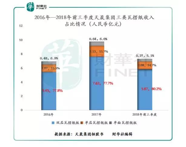 按照天晟集團(tuán)生產(chǎn)的瓦楞紙板產(chǎn)品分類(如下圖),公司主要收入來(lái)源是雙層瓦楞紙板。截至2018年前三季度,公司近三年的雙層瓦楞紙板收入占總營(yíng)業(yè)收入比重均值為78.6%。