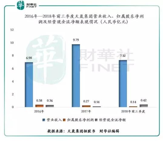 營(yíng)收、凈利增速不一,毛利率持續(xù)下滑 從公司營(yíng)業(yè)收入上看(如下圖),天晟集團(tuán)的營(yíng)業(yè)收入增速大起大落,營(yíng)業(yè)收入從2016年的6.98億元增至2017年的9.79億元,同比增速為40.35%;而2018年前三季度營(yíng)收同比增速放緩為8.42%。