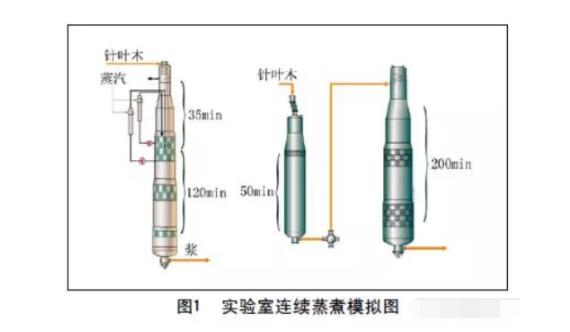 在傳統蒸煮器前設置低溫浸漬器,其蒸煮相為氣液雙相蒸煮。傳統的單液相蒸煮器的缺點是堿和溫度在蒸煮時不均一,其蒸煮方法為35min浸漬,120min蒸煮;而新型的氣液雙相蒸煮器,其蒸煮方法為50min浸漬,200min蒸煮。兩種工藝硫化度均為25%,苛化度均為80%。蒸煮殘堿均為10g/L(以氧化鈉計)。在新型的氣液雙相蒸煮中,添加前蒸煮黑液。