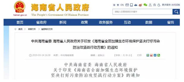 中共海南省委海南省人民政府關于印發《海南省全面加強生態環境保護堅決打好污染防治攻堅戰行動方案》的通知 瓊發〔2019〕6號 各市、縣、自治縣黨委和人民政府,省委各部門,省級國家機關各部門,各人民團體: 《海南省全面加強生態環境保護堅決打好污染防治攻堅戰行動方案》已經省委、省政府同意,現印發給你們,請結合實際認真貫徹落實。 中共海南省委 海南省人民政府 2019年3月9日 (此件公開發布) 海南省全面加強生態環境保護堅決打好污染防治攻堅戰行動方案 為深入貫徹落實習近平生態文明思想和習近平總書記在慶祝海南建省辦經濟特區30周年大會上的重要講話精神,全面貫徹落實《中共中央、國務院關于支持海南全面深化改革開放的指導意見》《中共中央、國務院關于全面加強生態環境保護堅決打好污染防治攻堅戰的意見》以及全國生態環境保護大會精神,堅決打好污染防治攻堅戰,全力推進國家生態文明試驗區建設,確保海南生態環境質量只能更好、不能變差,現結合實際,制定本行動方案。 一、大力推行綠色發展方式和生活方式 (一)促進產業綠色發展 1.開展區域空間環境影響評價,建設以“三線一單”(生態保護紅線、環境質量底線、資源利用上線和生態環境準入清單)為核心的生態環境分區管控體系。 2.實施產業準入負面清單制度,全面禁止高能耗、高污染、高排放產業和低端制造業發展。優化全省產業園區布局,新建產業項目原則上集中在園區建設運營。各類產業園區應加快完善園區環境基礎設施建設,將建設運維資金優先納入年度投資計劃。洋浦經濟開發區、東方工業園區、老城經濟開發區、海口國家高新技術產業開發區等重點產業園區應進一步優化規劃布局,按需完成集中供熱、污水收集與處理等基礎設施建設和運維。 3.開展“散亂污”企業及集群綜合整治專項行動,實施網格化監管執法。 4.全面建設生態循環農業示范省,加快創建農業綠色發展先行區,推進投入品減量化、生產清潔化、產品品牌化、廢棄物資源化、產業模式生態化的發展模式。深入推進農業水價綜合改革。建設現代化海洋牧場,推動漁業生產由近岸向外海轉移、由粗放型向生態型轉變。 5.發展裝配式建筑。到2020年,政府投資的新建公共建筑,以及社會投資的規定規模以上的新建商品住宅項目和商業、辦公等公共建筑項目,具備條件的全部采用裝配式方式建造。到2022年,具備條件的新建建筑原則上全部采用裝配式方式建造。 6.深入推進排污許可制度改革,2020年底前完成全省固定污染源的發證全覆蓋,實現對固定污染源的全過程監管和多污染物協同控制。嚴格實施按證排污、按證執法,全面推進固定污染源達標排放。 (二)調整優化能源結構 7.加快構建安全、綠色、集約、高效的清潔能源供應體系,到2020年清潔能源裝機比重達到60%以上。推動清潔低碳能源優先上網。大力推行“削煤減油”,禁止新增煤電,分階段逐步淘汰現有燃煤機組。2020年底前,全省基本淘汰35蒸噸/小時及以下燃煤鍋爐。 8.各市縣在2019年6月底前完成“高污染燃料禁燃區”劃定和調整。在禁燃區內,禁止銷售、燃用高污染燃料。全省范圍內禁止燃用石油焦。建立油品煤炭質量定期抽檢機制。 9.開展工業爐窯綜合整治,全面淘汰不達標工業爐窯,推動工業爐窯使用電、天然氣等清潔能源或集中供熱。 10.全面實施城鎮燃氣工程建設,推進燃氣下鄉進村“氣代柴薪”,構建覆蓋城鄉的燃氣管網。按需規劃建設一批燃氣發電項目。 11.推進建設昌江核電二期項目,積極推動小型堆示范項目,同步配套建設抽水蓄能電站。 (三)推行綠色生活方式 12.積極創建節約型機關、綠色家庭、綠色學校、綠色社區、綠色出行、綠色商場、綠色建筑等,各相關職能部門出臺具體實施方案和配套標準。 13.出臺禁止生產銷售使用一次性不可降解塑料制品的法規制度、實施方案和名錄,強化市場監督執法,運用經濟等調控手段,推廣全生物降解塑料替代產品。2020年底前全省范圍內全面禁止生產、銷售和使用一次性不可降解塑料袋、塑料餐具。 14.加強露天燒烤管控,除各市縣政府劃定的允許區域外,嚴禁在城鎮建成區內露天燒烤。嚴禁露天焚燒秸稈垃圾、寺廟道觀燃燒高香、城區公共場所露天祭祀燒紙焚香。 15.推動城鎮建成區所有排放油煙的特大型、大型、中型餐館食堂在2020年底前全部安裝高效油煙凈化設施,確保油煙達標排放。其他類型餐飲服務單位推廣使用油煙凈化設施。 16.積極開展生態文明示范創建,爭取2022年前后全省所有市縣達到國家或省級文明城市、衛生(健康)城市標準。 17.豐富生態文明教育形式和載體,將生態文明教育納入國民教育、農村夜校、干部培訓體系,融入社區規范、村規民約、景區守則。穩步有序推動環保設施和城市污水垃圾處理設施向公眾開放。 二、持續鞏固提升空氣質量 (四)推進機動車污染防治 18.采取經濟補償、限制使用、加強監管執法等疏堵結合措施,逐步推進老舊車淘汰和污染治理,加快淘汰采用稀薄燃燒技術和“油改氣”的老舊燃氣車。推行中重型老舊柴油車安裝顆粒物捕集器。2019年7月1日起,實施輕型汽車國家第六階段機動車排放標準。 19.推廣使用新能源汽車,黨政機關、公共服務等領域率先使用,到2020年底全省完成推廣使用新能源汽車3萬輛以上,建設充電樁2