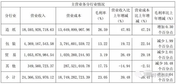 (山鷹紙業(yè)主營業(yè)務(wù)分行業(yè)情況)