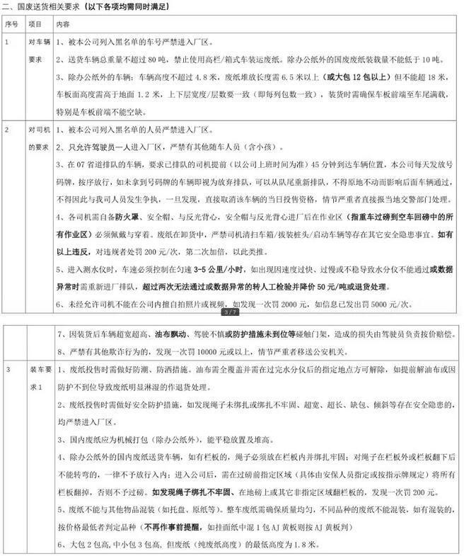 浙江景興紙業(yè)股份有限公司國(guó)內(nèi)廢紙收購(gòu)相關(guān)要求