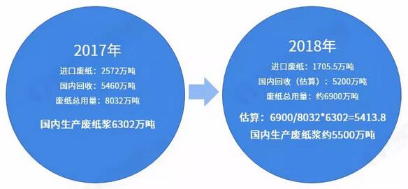 (糾正:2019年截至目前發布4批外廢) 供給端:廢紙漿是紙漿行業的主要產品 目前,廢紙漿全年產量數據暫未公布,但綜合考慮2018年,受廢紙進口環保許可和進口檢驗標準約束,使得廢紙進口量驟減,原料趨緊,進而促使國內回收廢紙價格持續高位,2018年廢紙回收量并不樂觀。 根據中國造紙協會初步估算,2018年中國回收廢紙(進口+國內回收)6900萬噸,而2017年國內生產廢紙漿6302萬噸,廢紙總用量約8032萬噸;考慮到廢紙加工成廢紙漿的技術和工藝沒有大的變化,生產效率保持不變,計算2018年生產廢紙漿合計約5500萬噸。 圖表10:2018年廢紙漿產量估算(單位:萬噸)