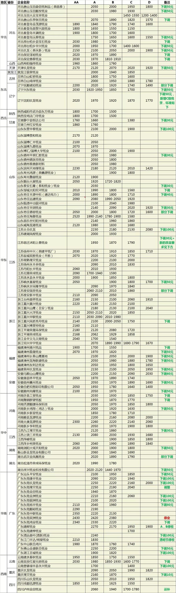 (4月4日的國廢價格) 國廢價格落到如今的局面,說到底,最主要原因還是原紙市場需求低迷所致。自3月份以來,紙價不斷下降,即便是龍頭紙廠玖龍紙業也在近一個月內連降三次,原紙市場萎靡不振,廢紙需求量自然減少。 就目前而言,預計短期內原紙市場恐將持續弱勢運行,難以企穩回升,而國廢市場也會由此受到影響。 不過最大的變數在于,清明假期將至,目前已有十多家紙廠發布了停收通知。因此,清明假期過后,國廢價格或會出現小幅回升的現象。 東北地區 遼寧沈陽玖龍紙業:清明節當天(4月5日)停收國廢一天,請妥善安排裝運。 西南地區 重慶理文紙業通知:清明節(4月5日)停收國廢一天,請知悉并合理安排收、發貨。 華北地區 天津玖龍紙業通知:清明節當天(4月5日)停收國廢一天,請妥善安排裝運。 河北玖龍(原永新)紙業:清明節當天(4月5日)停收國廢一天,請妥善安排裝運。 華東地區 福建泉州玖龍紙業:清明節當天(4月5日)停收國廢一天,其他時間正常收貨。 江蘇太倉玖龍紙業:清明節當天(4月5日)不收貨,其它時間正常收貨。 華南地區 廣東江門豐達/明星:(4月5日)周五清明節,暫停一天收貨。 廣東東莞金洲紙業:清明節當天(4月5號)停收國廢一天,其余時間正常收貨。 廣東東莞理文紙業:清明節當天(4月5日)停收國廢一天,其余時間正常收貨。 廣東東莞玖龍紙業通知:清明節當天(4月5日)停收國廢一天,其余時間正常收貨。 廣東東莞銀洲紙業:清明節當天(4月5日)停收國廢一天,其余時間正常收貨。 總的來看,目前國廢價格屬于較低水平,以A級國廢為例,其價格在2000元/噸上下,較高的為2200元/噸,較低的甚至降至1700元/噸,與昔日動輒3000元/噸的價位相比,可以說是已跌落神壇。 當然,三四月份屬于淡季,紙品包裝產業鏈上下游企業普遍都遭遇到需求低下的情況,相信隨著時序的漸進,需求將會逐步迎來改善,價格也會回歸到正常水平。