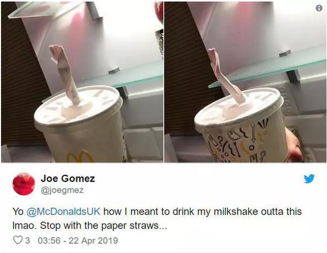 一個推特用戶寫道:“我完全是為了拯救海龜而使用這種環保紙吸管,但是麥當勞的紙吸管實際上只是一張紙,只是把它卷成了吸管,讓它變厚!!我只喝了兩口,吸管就開始粘在一起了。” 也有人抱怨道:“這些新吸管實在是太可怕了,它們很容易就被浸濕,嘴里的感覺就很奇怪,難道沒有比它更好的選擇嗎?” 雖然不滿麥當勞新吸管的消費者很多,但是他們要求撤銷環保紙質吸管的請愿還是被政府駁回了,政府稱,這并不是議會辯論所能改變的事情。 面對麥當勞的這種新吸管,雖有人抱怨,但也有人支持麥當勞的這一改變,他們回應道紙吸管對環境更好。 其中一個帖子寫道:“如果你坐在那兒抱怨‘麥當勞吸管’,你就是最自私的人。” 另一個人說:“天啊,我希望麥當勞不要向請愿書屈服,如果那些人不想使用紙吸管,那就用自帶的可重復使用的吸管好了。” 《太陽報》聯系了麥當勞的相關負責人,其英國和愛爾蘭首席執行官保羅·波姆羅伊(Paul Pomroy)表示,根據用戶反饋,消費者是希望麥當勞可以有新的吸管代替塑料吸管,但是前提是不要損害他們的用餐體驗。在過去的幾個月里,麥當勞也一直在與供應商合作伙伴商討,尋找一種既能保證服務客戶又能滿足麥當勞業務規模需求的解決方案。