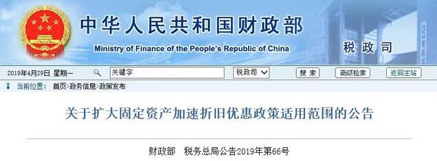導(dǎo)語:近日,財政部、稅務(wù)總局聯(lián)合發(fā)布《關(guān)于擴大固定資產(chǎn)加速折舊優(yōu)惠政策適用范圍的公告》(財政部、稅務(wù)總局公告2019年第66號)——固定資產(chǎn)加速折舊優(yōu)惠行業(yè)擴圍至全部制造業(yè)領(lǐng)域。