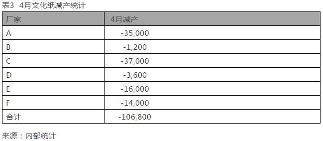 紙張供應大幅減少 3月進入傳統出版旺季,然而2019年3月和4月紙廠的停機卻沒有減少,4月文化紙市場總體減少供應10萬噸左右,如表3。前期市場普遍關注的某廠的新紙機產能也在4月緩慢釋放,但是沒有緩解市場的緊張供應。各工廠都出現超接訂單的情況,當月訂單無法完成交貨,部分工廠出現當月無法交貨的訂單、次月出現取消訂單的情況。