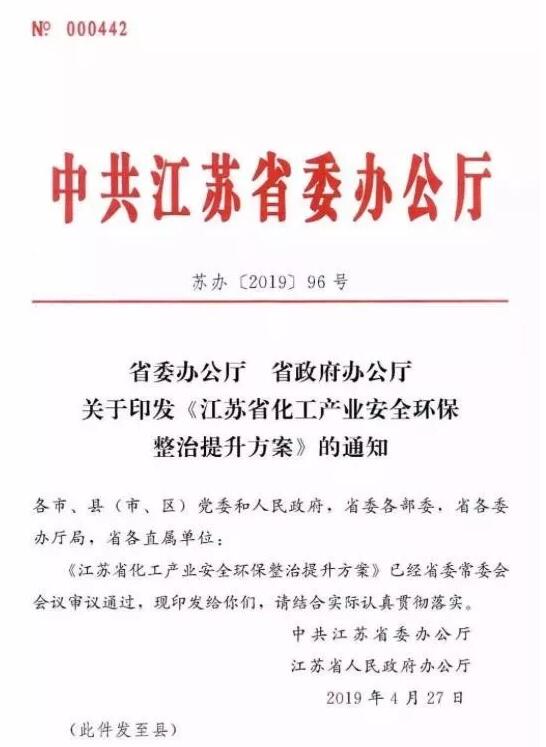 江蘇化工“風暴”正式來襲!2020年底前不達標企業將關停與搬遷! “3·21”江蘇鹽城爆炸事故過去一個多月后,江蘇省全面整治化工產業的“風暴”正式來襲。 日前,江蘇省委辦公廳正式下發《江蘇省化工產業安全環保整治提升方案》(以下簡稱《方案》),提出“依法依規推進整治提升”、“壓減沿江地區化工生產企業數量”、“壓減環境敏感區域化工生產企業數量”等嚴厲舉措。 這意味著,今明兩年,江蘇大量的化工園區、化工企業將面臨整治、搬遷與關停的命運。