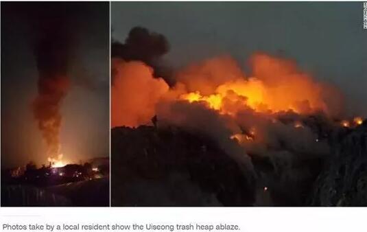 (圖為韓國霧霾 圖源:環球時報) 所以,韓國想到了第四個方案——堆積。 韓國一些垃圾處理公司無力處理過量垃圾,開始拒收,造成多地垃圾泛濫。這間接催生了黑市:一些被稱為“經紀人”的人,會以低于市場的價格回收垃圾,然后違規堆放在垃圾處理廠,或干脆堆到人口稀少的地方。 據悉,“經紀人”們每噸垃圾收費130-170美元(折合人民幣約881-1152元)不等,而非法傾倒垃圾這一行為只需交3000美元(折合人民幣約20220元)的罰款。 在這種情況下,一個人口較少、以傳統農業為支柱產業的小城——義城郡遭了殃。 在義城郡,堆積著一座韓國最大的垃圾山,高達15米,重達17萬噸。