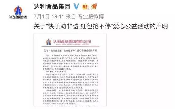 是公益活動還是一場騙局? 達利集團涉嫌虛假廣告宣傳 “快樂助非遺,紅包搶不停”。在2017年12月8日至2018年7月31日,達利集團可比克活動裝薯片開展了一次公益捐贈行動,上述10個字的助力非遺行動的口號即標注在罐體上,該活動內容介紹也很詳細:活動期間,凡購買可比克活動裝薯片,開蓋掃描封口內二維碼,即有機會獲得微信紅包1個或電子獎券,并可參與助力非遺公益活動及集卡活動,獲取其他禮品。消費者掃碼獲得現金紅包后,可選擇提現或助達利食品集團進行捐贈,還可點亮文化遺產項目來參與宣傳、傳播活動。消費者選擇助達利食品集團進行捐助的金額,將由達利食品集團全部捐贈給中國文化保護基金會,用于面向青少年開展非遺教育相關活動。該活動時間是“即日起至2018年7月31日”。 另外一款來自可比克黃色罐裝的薯片包裝殼上的文字則宣稱:達利食品集團將聯合中國非物質文化遺產公益基金發起“快樂助非遺,紅包搶不停”公益行動,該活動時間是“即日起至2018年5月31日”。 可以注意到,達利集團文中宣稱的聯合活動方包括“中國非物質文化遺產公益基金”和“中國文化保護基金會”。 本以為活動到期結束,產品將下架,但在之后根據江蘇省漣水縣市場監督管理局之后開展的調查中,上述活動過期后卻依然宣傳,執法人員在市場上還發現生產日期為“2018年8月6日”的可比克活罐裝薯片,其罐身依然是助力非遺活動宣傳的包裝。 漣水縣市場監督管理局經過前期8個多月輾轉多地深入調查,“中國文化保護基金會”根本不存在,而另一個“中國非物質文化遺產公益基金”早在2011年下半年就撤銷了。對此,漣水縣市場監督管理局認定達利集團存在以已撤銷的“中國非物質文化遺產公益基金”、不存在的“中國文化保護基金會”和實際紅包數遠低于允諾的紅包數發布虛假廣告。 對此,中華社會文化發展基金會在2018年11月5日也給漣水縣市場監督管理局出具“情況說明”并同時澄清:從未與達利食品集團進行過任何合作。 除上述虛假宣傳外,漣水縣市場監督管理局還發現,達利集團廣告宣傳的中獎紅包和紅包中獎率同樣涉嫌虛假廣告宣傳。 在活動裝薯片的罐身上,關于獎項設置非常明確地寫著:本次中獎紅包總數量為1.45億個,紅包中獎率為36%,獎項共設置7種,一等獎2888個,獎金1888元;二等獎1.888萬個,獎金108元…… 按36%的中獎率和紅包總數1.45億個計算,活動期間產品市場投放的總量應該超過4億個可比克薯片罐體。但是,據漣水縣市場監督管理局調查統計,達利食品集團投放在市場的活動產品總數僅9000多萬個(罐)。 對此,漣水縣市場監督管理局認為:實際的紅包數量遠低于允諾的紅包數量,而且廣告宣傳的2個公益組織目前均不存在,這屬于虛假廣告,嚴重違反了《中華人民共和國廣告法》相關規定。 依據《中華人民共和國廣告法》第四條規定:廣告不得含有虛假或者引人誤解的內容,不得欺騙、誤導消費者。廣告主應當對廣告內容的真實性負責。第二十八條規定:廣告以虛假或者引人誤解的內容欺騙、誤導消費者的,構成虛假廣告。廣告有下列情形之一的,為虛假廣告,其中第(二)項:商品的性能、功能、產地、用途、質量、規格、成分、價格、生產者、有效期限、銷售狀況、曾獲榮譽等信息,或者服務的內容、提供者、形式、質量、價格、銷售狀況、曾獲榮譽等信息,以及與商品或者服務有關的允諾等信息與實際情況不符,對購買行為有實質性影響的。 6月17日,漣水縣市場監管局下達行政處罰決定書,決定對達利食品集團處以3673.04萬元罰款,上繳國庫。 達利不認罰:將以法律途徑捍衛自身權利 達利集團進行的到底是公益活動還是一場騙局?達利集團方面是否有針對進行善款的捐贈? 對此,在7月1日每日經濟新聞(微信號:nbdnews)記者收到的達利集團方面的官方回復中,達利集團指出,“公益活動真實有效”“在活動結束后,已經將全部善款捐贈到中國文物保護基金會。” 對此,記者登錄中國文物(達利的活動表述中為“文化”)保護基金會官網瀏覽后發現,達利集團方面的確在2018年8月1日以“快樂助非遺”項目的名義向中國文物保護基金會捐贈10萬元。 這也意味著達利集團真正捐到的是“中國文物保護基金會”,而罐身上宣傳的是“中國文化保護基金會”,一字之差背后被開出天價罰單,達利對于這樣的紕漏如何解釋? 在達利的官方回應中顯示,“在活動過程中,由于印刷供應商工作人員的疏忽,導致包裝印刷出現了一些失誤。但此次公益銷售活動是真實有效的。我司已完全、如期地履行協議約定,不存在任何虛假行為,受贈方中國文物保護基金會也按時拿到了善款。” 達利集團還指出,“在規定的活動期限內,至今并無接到消費者投訴無法獲得兌獎的情況。” “詐捐門”背后有無烏龍? 對于工作中的疏忽,達利集團一方面在表示已深刻檢討、積極組織整改并已認真汲取教訓的同時,達利集團對于這份巨額罰單還存有異議。 “此次活動我司的確存在客觀過失。然而,針對一場真實存在的公益活動,漣水縣市場監督管理局從重適用《廣告法》對我司處以巨額罰款,顯然不符合錯罰相當的法律原則。”達利集團表示,“我們將尋求以法律途徑來捍衛自身權利。” “看起來是一場由于供應商工作人員犯下的低級錯誤,但這么一場大型的活動,達利方面就沒有專業的市場
