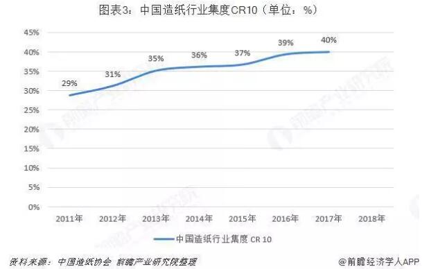 從行業(yè)整體的產(chǎn)銷量數(shù)據(jù)來(lái)看,經(jīng)過(guò)2010年以來(lái)的環(huán)保政策去產(chǎn)能之后,造紙行業(yè)的CR10從2011年的28.70%逐步上升到2017年的39.95%,而美國(guó)造紙行業(yè)在經(jīng)歷環(huán)保立法去產(chǎn)能及行業(yè)并購(gòu)之后,CR10已經(jīng)達(dá)到了90%左右。