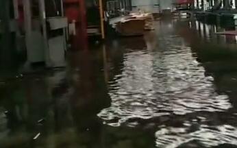 一板材廠庫房積水嚴重,車間很多材料和機器都泡了水。