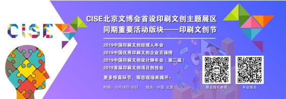 主辦單位: CISE北京文博會 上海印搜文化傳媒股份有限公司 承辦單位: 中華印刷包裝網 文化創意商城 支持單位: 中國文教體育用品協會、中國國際展覽中心集團公司、中國印刷及設備器材工業協會包裝分會、中國印刷及設備器材工業協會柔印分會、中國絲網印刷行業協會、長沙市文化創意產業協會、廣東省印刷復制業協會、湖南省包裝聯合會、福建省包裝聯合會、陜西省包裝技術行業協會、海南省印刷行業協會、江西省包裝技術行業協會、北京市印刷行業協會、天津市工藝美術品行業協會、長沙市印刷行業協會、寧波市印刷行業協會、深圳市商業美術行業協會、上海市數字印刷行業協會、廊坊印刷行業協會等。 支持媒體(排名不分先后): 中國印刷、今日印刷、湖南包裝、必勝網、紙業網、天昊傳媒、廣告與印刷、海達商情、攬境傳媒、標簽與貼標、上海華凝、龍琨傳媒&中國好包裝網、傈邦印刷網、包裝企業網、中華印刷包裝網、印刷搜搜APP等。 “首屆中國印刷文創藝術節”將于2019年10月18日在北京·中國國際博覽中心(靜安莊館)5號館盛大舉辦,旨在為中國從事印刷文創產品開發、生產制作的傳統印刷企業轉型提供新思路、新模式、新智慧,成為印刷文創領域信息共享、合作對接、互學互鑒的行業交流平臺。 “首屆中國印刷文創經理人年會”也將成為CISE北京文博會期間的重要組成版塊,以“創意驅動、開放融合”為主題,邀請式分享全球印刷文創產業發展的創新理念和成果,洞悉印刷文創最新發展趨勢,聚焦探討文創熱點話題,從而引領中國印刷文創產業的健康持續發展。 同期活動展覽 1、CISE 北京文博會 2、印刷文創設計獅交流酒會 3、印刷文創-手賬市集 4、2019 旅游文創產業高峰論壇 5、中國印刷文創聯盟成立儀式 6、年會文創伴手禮新品發布會暨訂貨會 7、紅色文創設計大賽作品展示區 8、優秀動漫 IP 文創產品走秀 9、外商洽談對接走訪 10、首屆印刷文創項目創投會 更多驚喜環節等你一同開啟~~~ 年會內容亮點 ● 文創產業政策解讀 ● 同期海量文創產品展示、眾多新品首發 ● 文創產業項目創投會(多名資深投資人蒞臨現場) ● 精英文創企業干貨分享 ● 優秀印刷文創企業作品走秀暨頒獎典禮 ● 大咖講堂傾聽行業外的聲音 ● 高峰論壇熱點話題一網打盡 ● 中國印刷文創產業聯盟成立儀式 ● 參觀交流,造訪標桿 日程安排 10 月 17 日 12:00-18:00——嘉賓簽到,酒店入住 18:00-21:00——“2019 中國印刷文創企業 100 強”頒獎典禮 10 月 18 日 09:30-10:00——CISE 北京文博會開幕典禮 10:15-11:30——團體標準發布 11:30-13:00——展會自由參觀 13:00-17:00——2019 中國印刷文創經理人年會 【亮點:大咖云集、工藝探討、案例分享、項目對接、資源共享、鏈動價值】 10 月 19 日 10:30-12:00——年會文創伴手禮新品首發暨訂貨會 13:00-17:00——首屆印刷文創項目創投會 【亮點:多款文創禮品新品首發,多個文創項目現場發布,多名投資人空臨現場,憑票入場】 10 月 20 日 09:30-10:30——展會參觀 10:30-12:00——企業參觀 【擬參觀企業:雅昌文化集團、東方博古文化發展有限公司】 2019中國印刷文創節期待您的到來!趕緊掃碼報名吧!