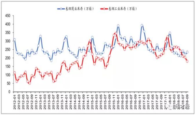金佰利:產(chǎn)品創(chuàng)新及品類擴(kuò)張助力公司發(fā)展。20世紀(jì)70年代起,金佰利公司不斷剝離業(yè)績不佳的銅版紙業(yè)務(wù),轉(zhuǎn)向產(chǎn)品研發(fā)及新品擴(kuò)張,1968年推出Kimbies紙尿褲,開始進(jìn)入嬰幼兒紙尿褲市場,隨后1975年上市WYPALL擦拭系列、1978年上市Huggies紙尿褲、1980年推出Depend成人紙尿褲品牌等,產(chǎn)品拓展不斷提升公司競爭力。 木漿價(jià)格回落利好中順潔柔。生活用紙成本中木漿原料占比50%-60%,漿價(jià)下跌擴(kuò)大毛利空間,且4月增值稅降低+4月通脹提升,終端定價(jià)能力強(qiáng)、行業(yè)格局較好的必選消費(fèi)品品類有望獲得超額利潤。行業(yè)延展性強(qiáng)、空間大,對比海外消費(fèi)升級趨勢明顯,公司產(chǎn)品結(jié)構(gòu)持續(xù)升級,估值有望提升。預(yù)計(jì)2019-2021年主營業(yè)務(wù)收入68.41、81.78、97.39億元,歸母凈利潤5.63、6.99、8.55億元。 3、煙標(biāo) 煙草去庫存初步完成,行業(yè)重新進(jìn)入補(bǔ)庫存階段,包裝需求恢復(fù)向上。煙草產(chǎn)量對應(yīng)煙標(biāo)需求量。1)2013-2015年由于卷煙增產(chǎn)等因素導(dǎo)致市場供過于求,煙草工商業(yè)庫存(尤其是工業(yè)庫存)一度累積攀升,2016年煙草銷量大幅下滑,高庫存問題凸顯,行業(yè)進(jìn)入去庫存階段,煙標(biāo)需求受到抑制,煙標(biāo)企業(yè)的業(yè)績增速有所減緩。2)根據(jù)煙草專賣局?jǐn)?shù)據(jù),截止2018年9月,卷煙工商業(yè)庫存降至415.45萬箱,大致回到2014年合理水平。 全國卷煙工商業(yè)庫存變化(萬箱)