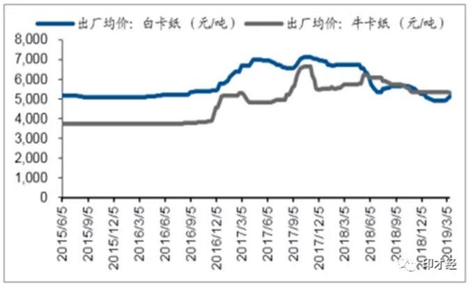 成本處于低位利潤彈性的邏輯依然成立,預(yù)計(jì)各紙包裝公司盈利能力會有同比提升。各類紙品紙價(jià)有所下滑,其中白卡紙下滑幅度較為顯著。目前國內(nèi)白卡紙出廠均價(jià)5100元/噸左右,遠(yuǎn)低于去年年初6700元/噸的高價(jià),上游成本下降不會快速全部傳導(dǎo)到下游定價(jià),包裝類公司有望享受到其中一部分的利潤價(jià)值。 箱板紙、瓦楞紙價(jià)格變化