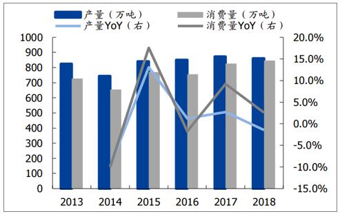 數(shù)據(jù)來源:公共資料整理 銅版紙產(chǎn)量、消費量及同比增速