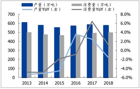 數(shù)據(jù)來源:公共資料整理 雙膠紙產(chǎn)量、消費量及同比增速