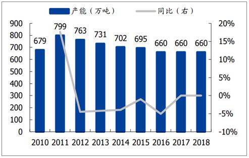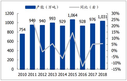 數(shù)據(jù)來源:公共資料整理 3.產(chǎn)能增長放緩,2019年無新增產(chǎn)能投放。 銅版紙產(chǎn)能自2012年持續(xù)下降,2018年產(chǎn)能未增長。2018年晨鳴投放100萬噸雙膠紙產(chǎn)能,其他上市紙企無新增雙膠紙產(chǎn)能,2018年雙膠紙產(chǎn)能凈增55萬噸至1031萬噸。根據(jù)當前大型紙廠擴建計劃,2019年沒有新增雙膠銅版紙產(chǎn)能。 雙膠紙產(chǎn)能及同比增速