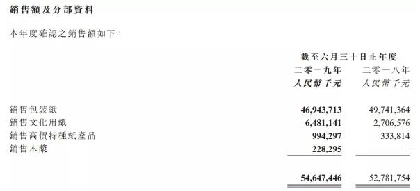 年度收入增加約3.5%,乃受銷量增加約8.5%所帶動,而該升幅乃主要由于最近收購的美國漿紙廠所致?、高強瓦楞芯紙、涂布灰底白板紙、文化用紙、高價特種紙及漿產品的銷售收入分別占總銷售收入約47.9%、21.3%、16.7%、11.9%及2.2%,2018財政年度則分別為52.2%、23.7%、18.4%、5.1%及0.6%。