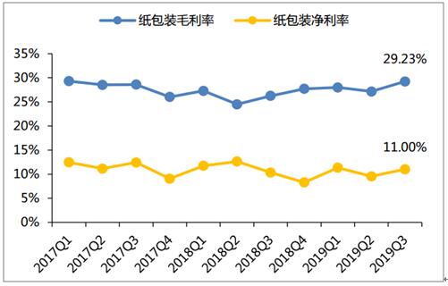 數(shù)據(jù)來(lái)源:公共資料整理 紙包裝2017-2019Q3毛利率及凈利率