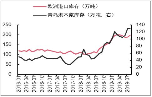 數(shù)據(jù)來源:公開資料整理 2019年截至目前,木漿均價跌幅已接近25%。需求不振、港口庫存依然高企疊加人民幣短期貶值壓力,然而長期來看,木漿供給格局較為集中,全球Top5木漿廠產(chǎn)能占比約36%,而Top5闊葉漿廠產(chǎn)能占比超50%。19H2以來海外漿廠已通過停機(jī)減產(chǎn)以及減少發(fā)運量的方式維持漿價穩(wěn)定,在上游持續(xù)去庫存期間,預(yù)計至2021年前全球漿廠將不再投放新增產(chǎn)能。在上游控量保價的大背景下,漿價下行空間有限,預(yù)計2020年有望企穩(wěn)。而漿價反彈則取決于下游需求的修復(fù)程度,對此我們?nèi)詴掷m(xù)跟蹤。 全球港口木漿庫存水平依然高企