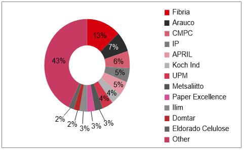 數(shù)據(jù)來源:公開資料整理 全球木漿產(chǎn)能結(jié)構(gòu)(%)