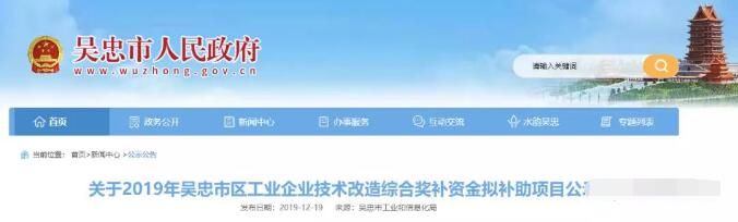 近日,寧夏省吳忠市人民政府網站公示。 根據《寧夏回族自治區工業對標提升轉型發展行動方案》中實施新一輪技術改造行動的要求,依照《吳忠市區技術改造綜合獎補資金管理使用暫行辦法》(吳工信發〔2019〕101號),由市工信局、財政局、稅務局、生態環境局、應急管理局相關單位專業人員組成市區工業企業技術改造綜合獎補資金審核評價小組,對太陽山開發區、寧夏吳忠金積工業園區管委會及利通區工業信息化和商務局推薦申報的技術改造項目進行了審核評價。
