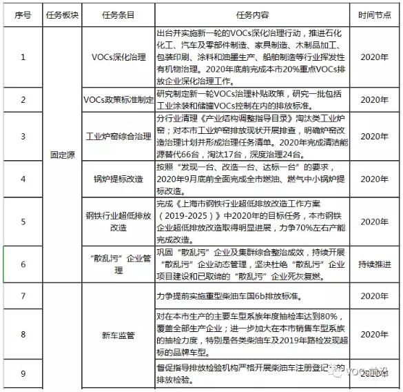 根據附件2,即上海市2020年大氣污染治理重點工作任務表,要求在2020年底前完成本市20%重點VOCs排放企業深化治理工作,包裝印刷、涂料和油墨生產企業被列為VOCs重點行業。